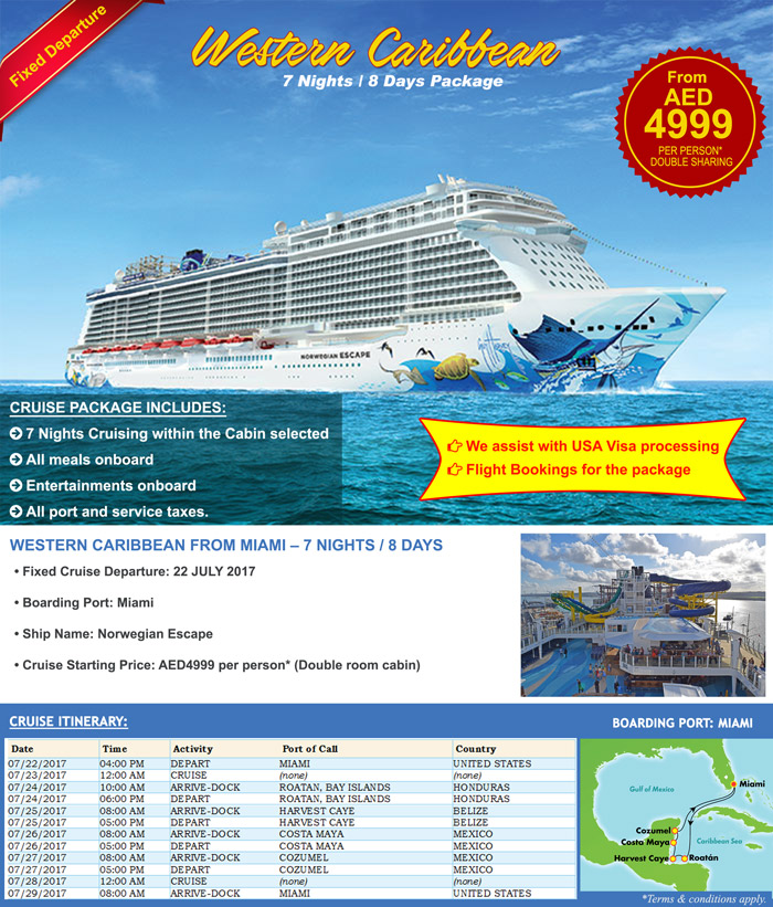 | 07/24/2017 | 06:00 PM | DEPART | ROATAN, BAY ISLANDS | HONDURAS |